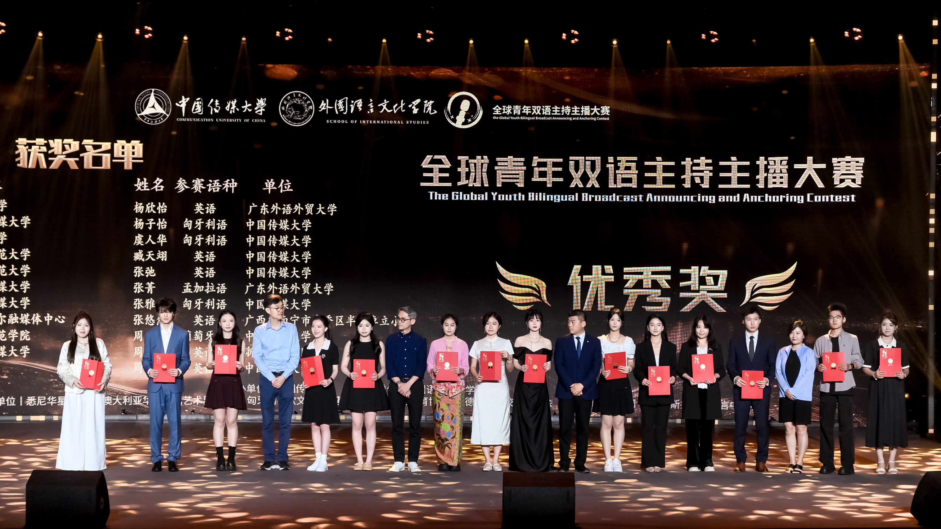 外国语言文化学院负责人及多家知名企事业单位负责人、国际交流领域代表分别为优秀奖、海外最佳潜质奖、最佳单项奖、优秀组织奖的选手和机构颁奖。